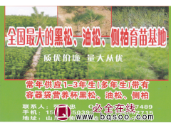 莒南县树忠黑松油松侧柏育苗基地质优价廉量大从优常年供应1-3年生(多年生)带有容器袋营养杯黑松、油松、侧柏